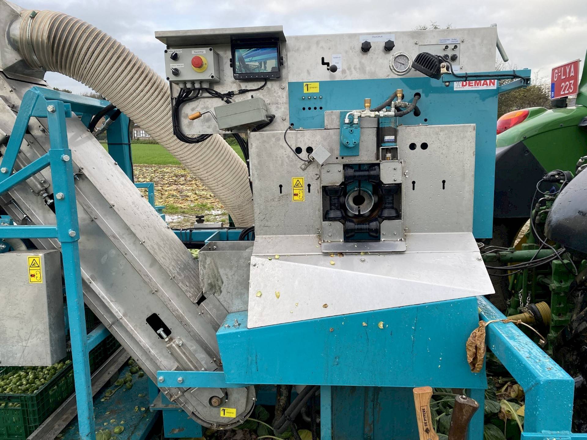 The PP1 is equipped with an axial pre-sorting system that mechanically sorts sprouts by size. The sprouts are sorted into 3 classes and divided into small crates. The first box holds the smallest sprouts, the 2nd box holds the intermediate size and the 3rd box holds the largest sprouts.